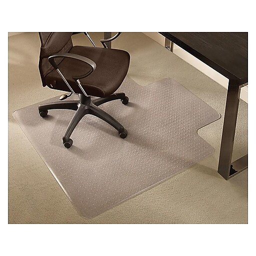 Browse our large selection of the best desk chair mats for carpet. We offer a collection of desk chair mats in various styles and sizes. Made with black vinyl to add a professional look to your workspace. Shop chair mats at staples for free shipping. Keep your flooring safe from wear and tear with an office chair mat for carpet. Use the staples flat pile carpet chairmat, standard lip, 36' x 48', to protect your office carpeting from wear and tear caused by rolling. This chair mat is made with durable vinyl that is greenguard gold certified for low chemical emissions to promote a healthier workspace. Protect your floors from damages with office chair mats for carpet or hardwood. Protect your carpet or hardwood floor with durable office chair mats. Rectangle shape for a larger rolling area , 36w x 48l x 0.085h.